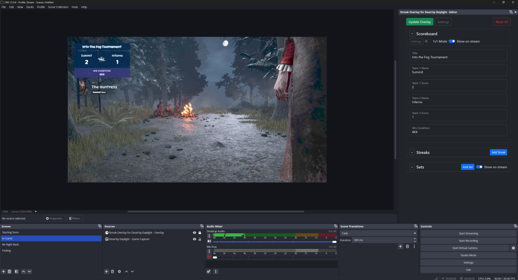Use the Sets feature to show which killers you're playing today. Let viewers know who's playing first and who won. From Bo1 to Bo7, add as many sets as you want and they'll be displayed cleanly in a carousel on your stream.